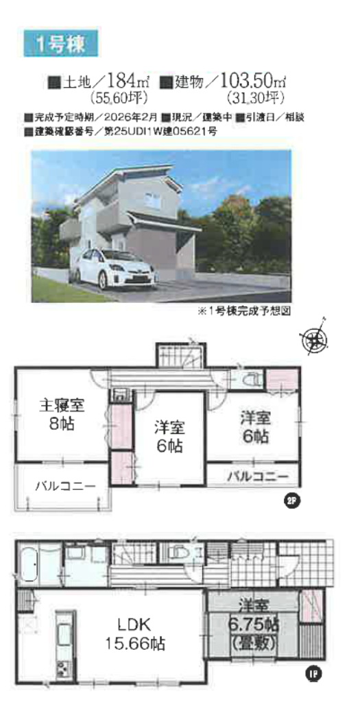 (1F)LDK15.66、(1F)洋6.75、(2F)洋8、(2F)洋6、(2F)洋6 |