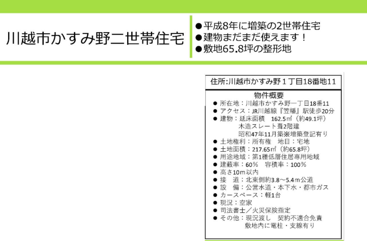 JR川越線笠幡駅まで 徒歩20分 |