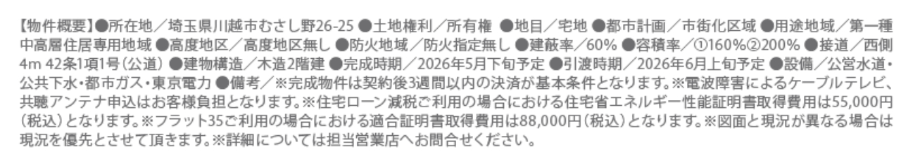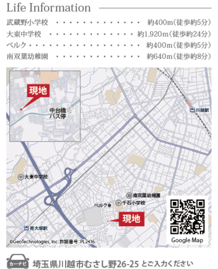 ☆川越市むさし野2期 新築一戸建て ★新築仲介手数料無料! ☆住宅性能評価書取得予定物件! ☆駐車場2台 ☆フラット35S利用可! ☆公営水道、本下水、都市ガス ☆小学校徒歩10分以内! ☆浴室乾燥機ユニットバス! ※現地販売業者さんは売主ではございません。 アンケート等の手続きをされますと当社での物件紹介(仲介料手数料無料)が出来なくなります。ご内覧を希望のお客様は当社にて立ち合い・ご案内をさせて頂きますのでお手数ですがTEL049-285-6300までお電話下さい。急いで現地へ向かいますので御連絡お待ちしております。 |