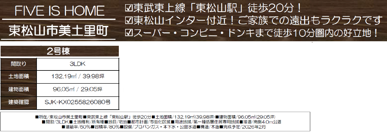 ☆東松山市美土里町 新築一戸建て ★新築仲介手数料無料! ☆東武東上線『東松山駅』徒歩20分! ☆敷地面積39坪! ☆南道路につき陽当たり良好です! ☆広々した18帖のリビングには対面キッチン付き! ☆24時間換気システム、室内物干し、食器乾燥機、浴室乾燥機などの設備です! ☆東松山市立青鳥小学校、本下水、プロパンガス ☆第二みどり保育園…徒歩3分、業務スーパー東松山店…徒歩7分、ドラッグストアコスモス石橋店…徒歩8分、セブンイレブン東松山石橋東店…徒歩7分、MEGAドン・キホーテ東松山店…徒歩10分、たなか内科・眼科クリニック…徒歩8分 |
