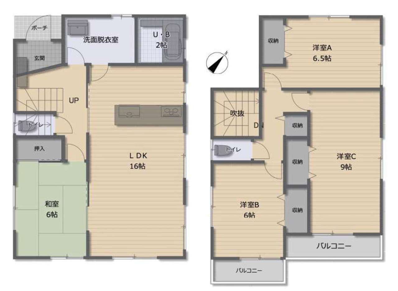 (1F)LDK16、(1F)和6、(2F)洋6、(2F)洋6.5、(2F)洋9 |