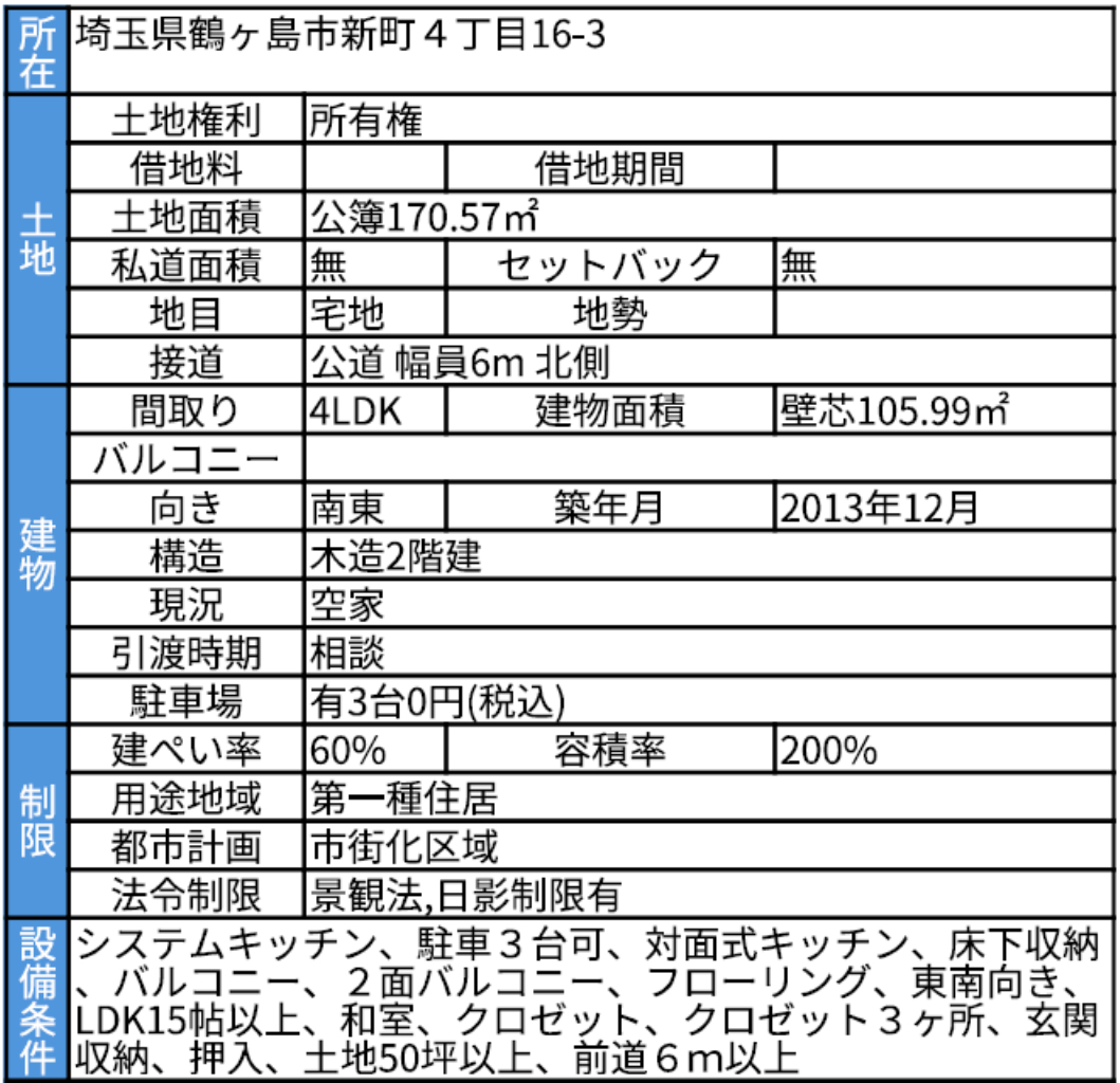 鶴ヶ島市新町4丁目 |