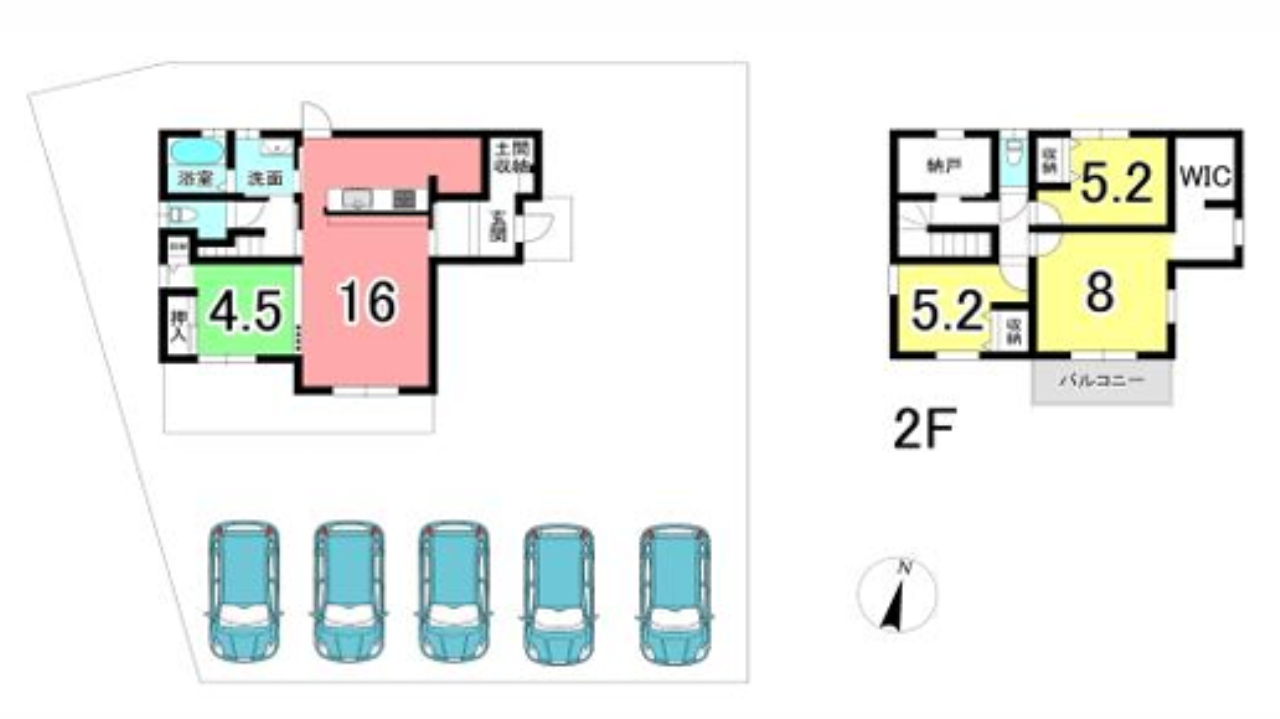 (1F)LDK16、(1F)和4.5、(2F)洋5.2、(2F)洋5.2、(2F)洋8、(2F)納戸 |