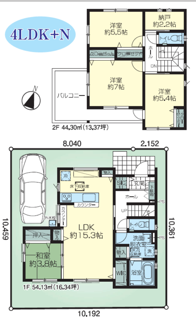 (1F)LDK15.3、(1F)和3.8、(2F)洋5.5、(2F)洋7、(2F)洋5.4、(2F)納戸2.2 |
