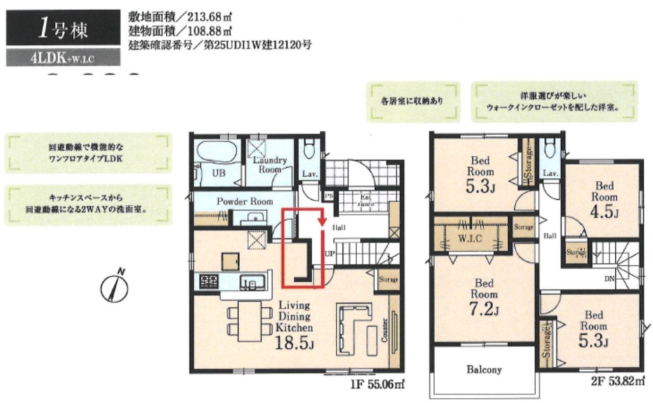 (1F)LDK18.5、(2F)洋5.3、(2F)洋5.3、(2F)洋4.5、(2F)洋7.2 |