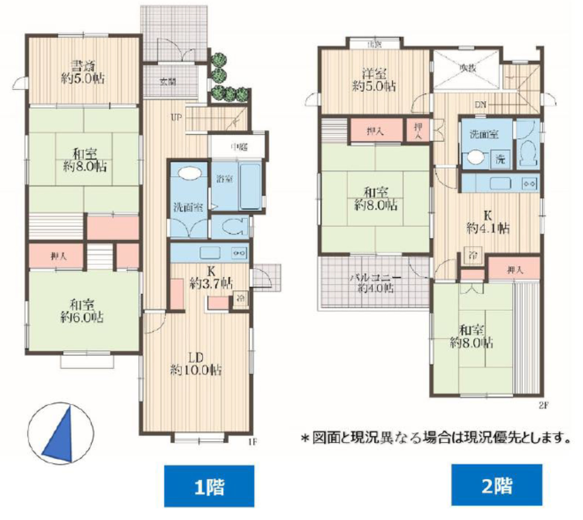 (1F)LDK13.7、(1F)書斎5、(1F)和8、(1F)和6、(2F)K4.1、(2F)洋5、(2F)和8、(2F)和8 |