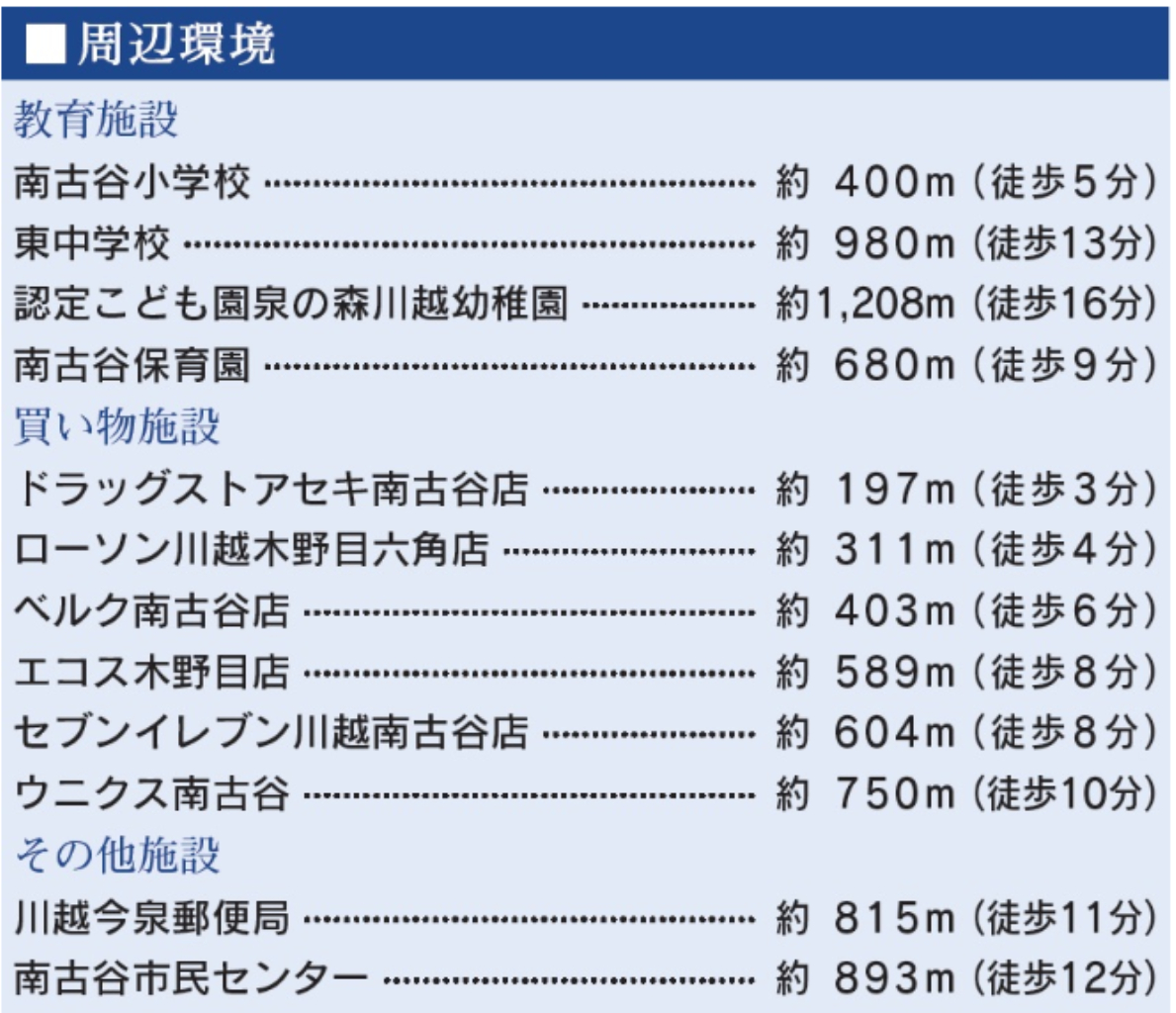 JR川越線南古谷駅まで 徒歩7分 |