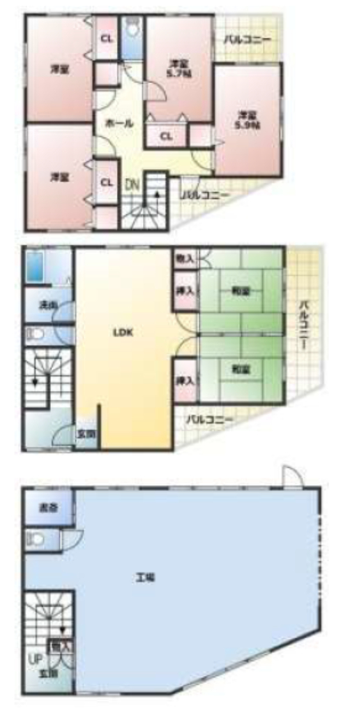 (1F)工場、(2F)LDK、(2F)和、(2F)和、(3F)洋、(3F)洋、(3F)洋、(3F)洋 |