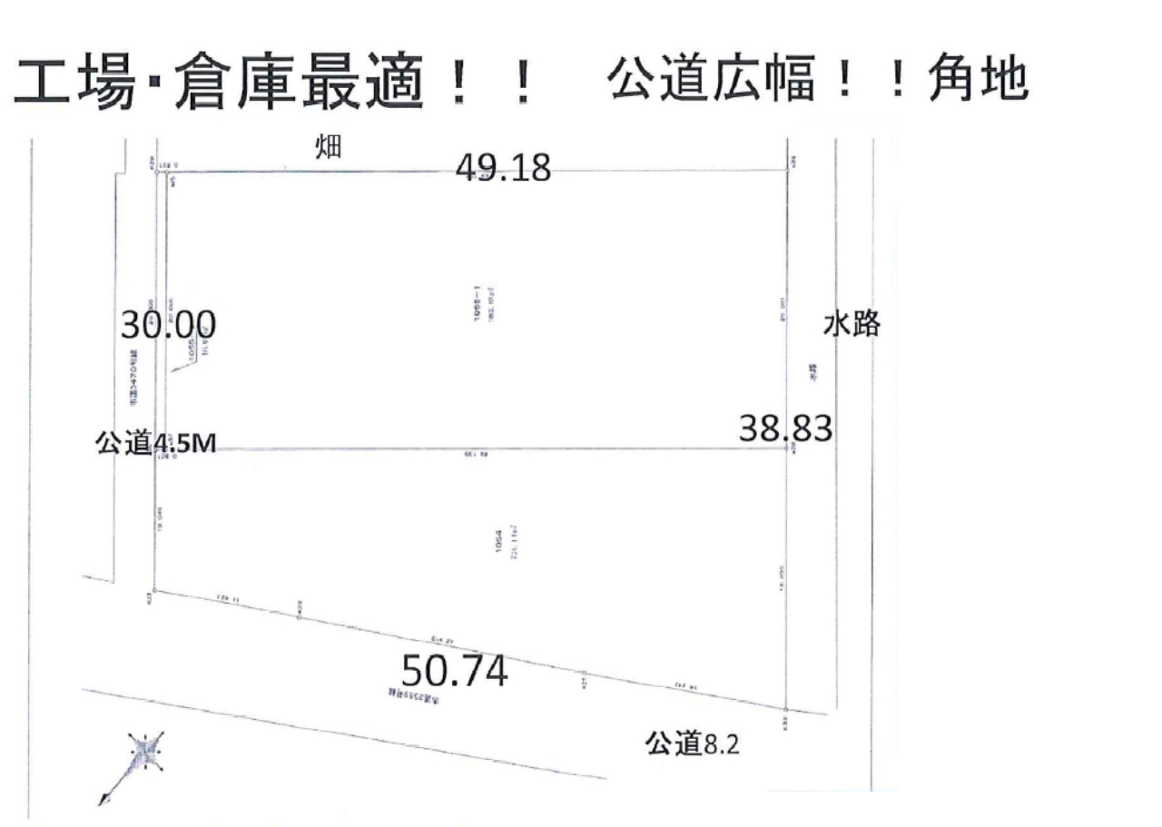 ☆敷地面積521坪! ☆建築条件無し! ☆工場や資材置き場・倉庫などに最適! ☆陽当たり良好! ☆公営水道 |
