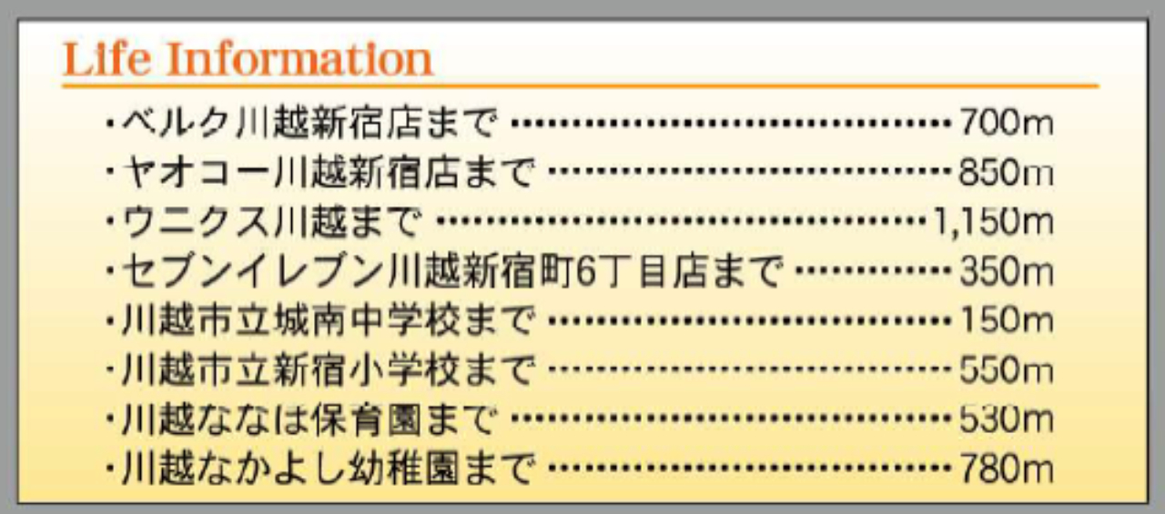 東武東上線川越駅まで 徒歩18分 |