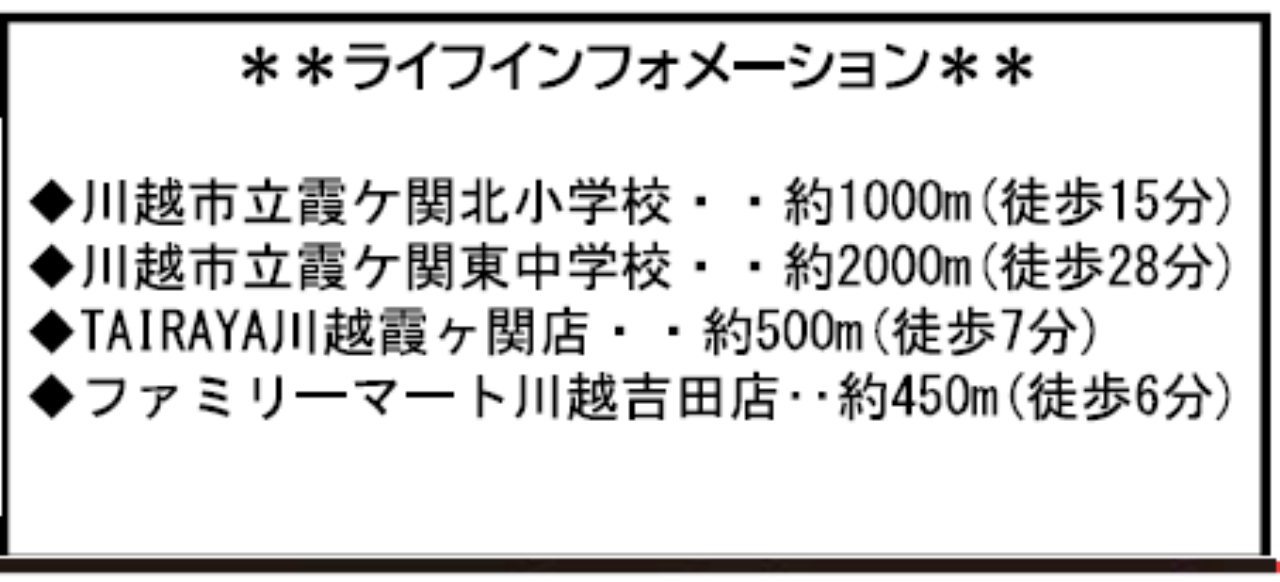 東武東上線霞ヶ関駅まで 徒歩15分 |