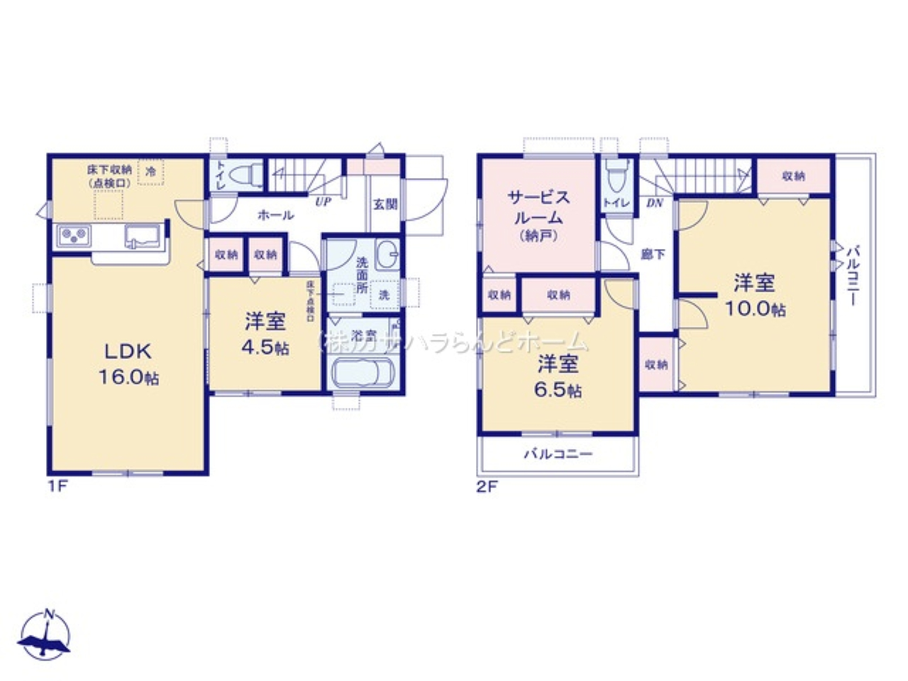 (1F)LDK16、(1F)洋4.5、(2F)洋10、(2F)洋6.5、(2F)納戸4.5 |