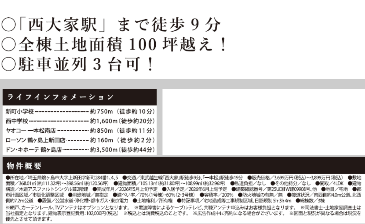 東武越生線西大家駅まで 徒歩9分 |