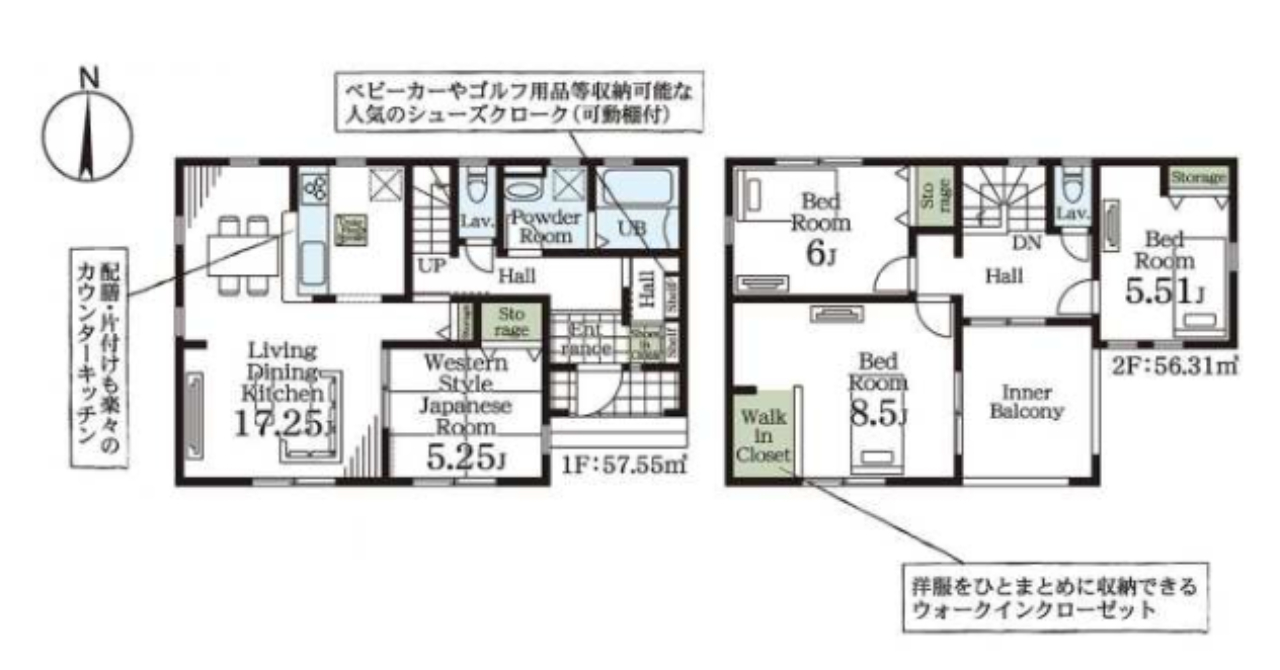 (1F)LDK17.25、(1F)和5.25、(2F)洋6、(2F)洋8.5、(2F)洋5.5 |
