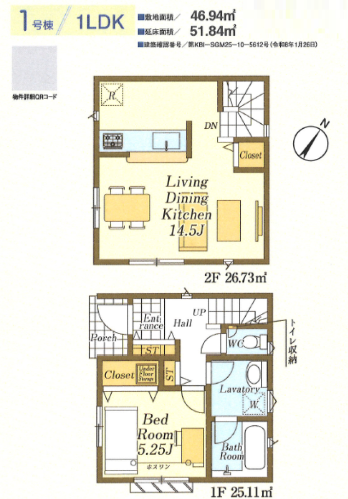 (1F)洋5.25、(2F)LDK14.5 |