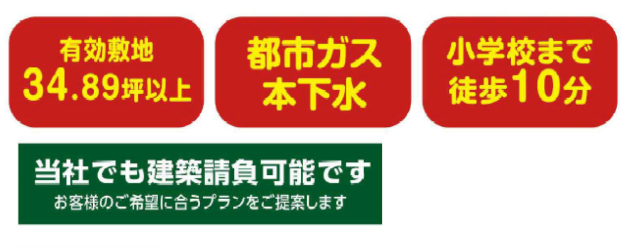【3区画】 ☆川越市藤間14期 建築条件無売り地 全3区画 ★仲介手数料無料土地! ☆東武東上線『新河岸駅』徒歩12分! ☆土地面積46坪! ☆建築条件はありません。お好きなハウスメーカーで建築できます! ☆川越市立高階南小学校まで徒歩10分、高階中学校まで徒歩11分の通学距離です! ☆公営水道、公共本下水、都市ガス ☆どなたでも建築できる土地です!(34条11号適用含む) ☆高階保育園…徒歩7分、藤原白百合幼稚園…徒歩7分、ウェルパーク…徒歩10分、ヤオコー…徒歩11分、コープみらい…徒歩11分、コモディイイダ…徒歩11分、ローソン…徒歩11分、藤原町第一公園…徒歩3分 |