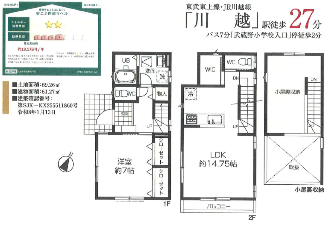 ☆川越市新宿町6丁目 新築一戸建て ★新築仲介手数料0円無料! ☆開放感のある2階リビング+吹き抜け! ☆シングルやカップルの住まいにおススメの間取りです。 ☆公営水道、本下水、都市ガス ☆1F洋室7帖にはクローゼット2つ分の収納力! ☆視線も気にならない可明るいリビングダイニング! ☆人気の対面キッチン!、小学校徒歩10分以内! ※現地販売業者さんは売主ではございません。 アンケート等の手続きをされますと当社での物件紹介(仲介料手数料無料)が出来なくなります。ご内覧を希望のお客様は当社にて立ち合い・ご案内をさせて頂きますのでお手数ですがTEL049-285-6300までお電話下さい。急いで現地へ向かいますので御連絡お待ちしております。 |