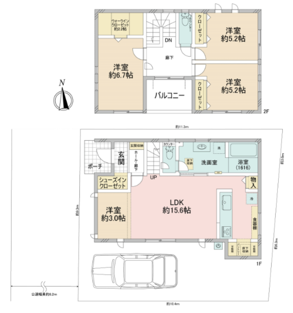(1F)LDK15.6、(1F)洋3、(2F)洋6.7、(2F)洋5.2、(2F)洋5.2 |