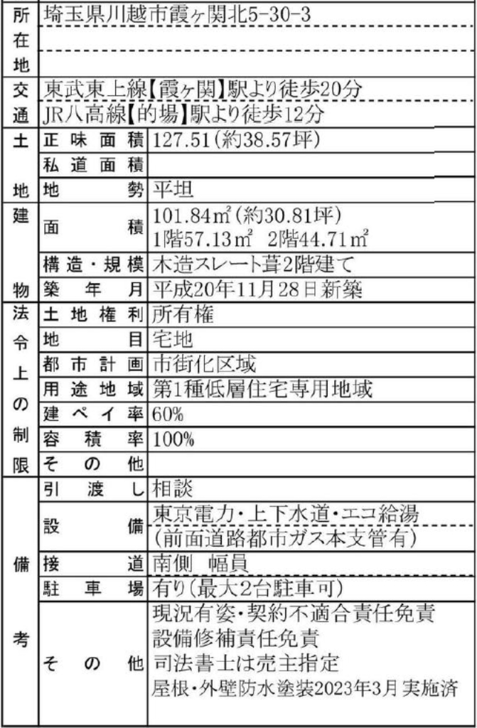 東武東上線霞ヶ関駅まで 徒歩20分 |