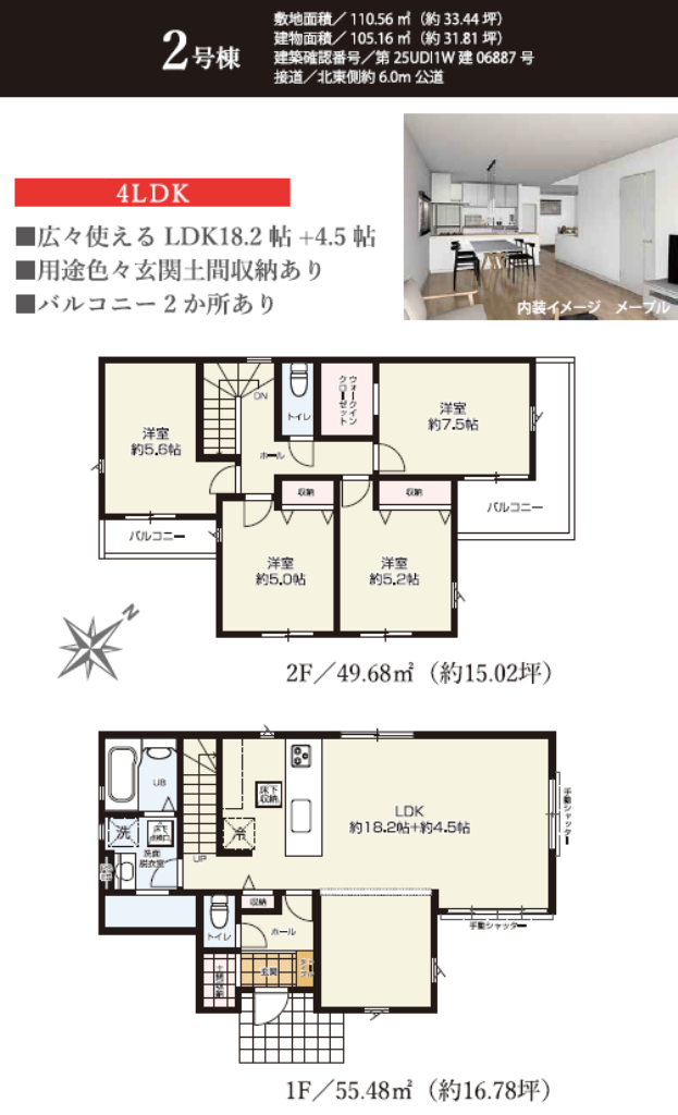 【2号棟】 ☆坂戸市千代田8期 新築一戸建て 2棟現場 ★仲介手数料無料新築一戸建て! ☆家族の会話が増えるリビングイン階段! ☆フラット35S利用可! ☆公営水道、本下水、都市ガス ☆駐車場2台 ☆日当り良好! ☆南道路 ☆小学校徒歩10分以内! ☆道路や区画の整った住宅地! ☆玄関土間収納付き!バルコニー2箇所! ☆広々使えるLDK18.2+4.5帖 ※現地販売業者さんは売主ではございません。 アンケート等の手続きをされますと当社での物件紹介(仲介料手数料無料)が出来なくなります。ご内覧を希望のお客様は当社にて立ち合い・ご案内をさせて頂きますのでお手数ですがTEL049-285-6300までお電話下さい。急いで現地へ向かいますので御連絡お待ちしております。(^o^) |