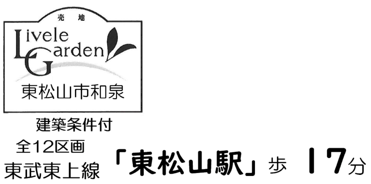 【1号地】 ☆東松山市和泉町 建築条件無売り地!全12区画 ☆東武東上線『東松山駅』徒歩17分! ☆土地面積44坪! ☆建築条件付きの売地です! ☆全12区画の大型分譲地! ☆東松山市立青鳥小学校、公共本下水、都市ガス ☆どなたでも建築できる土地です!(34条11号適用含む) |