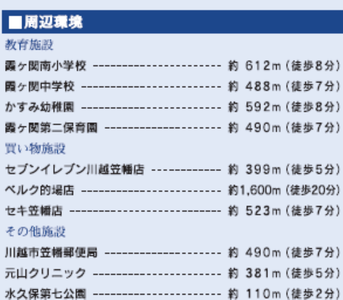 JR川越線笠幡駅まで 徒歩15分 |