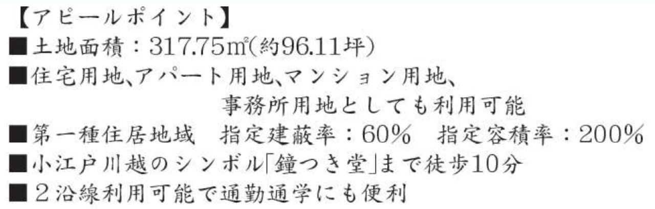 西武新宿線本川越駅まで 徒歩14分 |