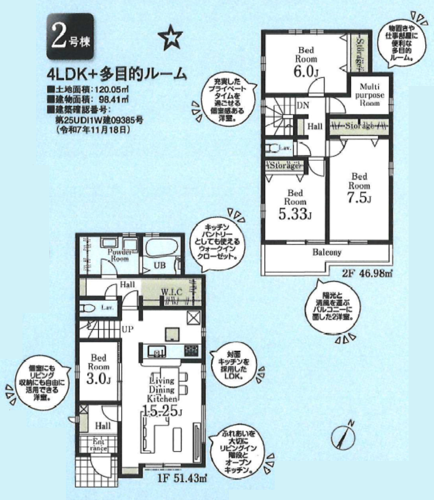 【2号棟】 ☆川越市大袋新田第2期 新築一戸建て 全2棟現場 ※本物件は仲介手数料無料でのご紹介は現時点は行っておりません。 ☆西武新宿線『南大塚駅』徒歩13分! ☆敷地面積36坪! ☆家族みんなで使える大容量のウォークインクローゼットあり! ☆テレワークや作業スペース等に役立つ多目的ルーム付き! ☆駐車場2台! ☆川越市立大東西小学校まで徒歩6分、大東西中学校まで徒歩15分の通学距離です! ☆住宅性能評価書取得! ☆省エネBELS対象物件! ☆20年保証地盤サポートシステム! ☆長期優良住宅! ☆フラット35S利用可! ☆公営水道、本下水、都市ガス ☆ファミリーマート川越インター店(約683m)、いなげや川越南大塚駅前店(約1141m)、飯能信用金庫南大塚支店(約809m)、川越南大塚駅前郵便局(約858m)、武蔵野総合病院(約107m)、ドラッグストアセキ南大塚店(約870m)、セブンイレブン川越南大塚駅北口店(約728m) |