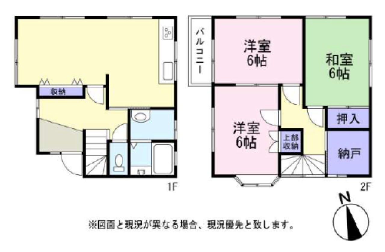 (1F)LDK、(2F)洋6、(2F)洋6、(2F)和6、(2F)納戸 |