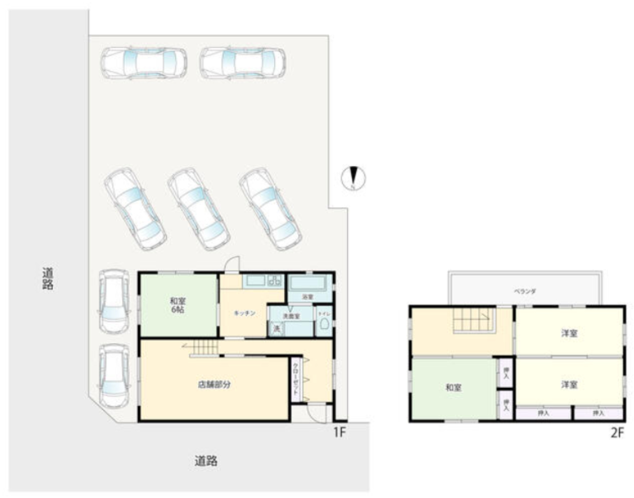 (1F)和6、(1F)K、(1F)店舗スペース、(2F)和、(2F)洋、(2F)洋 |