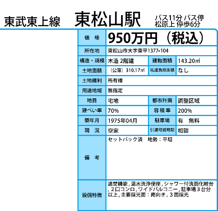 東武東上線東松山駅まで バス11分 |