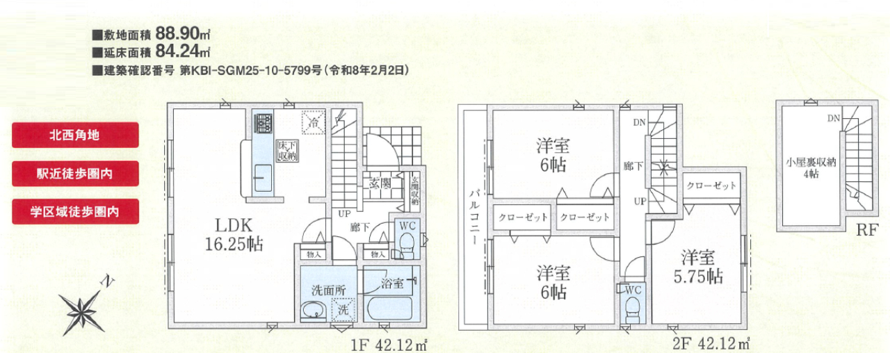 (1F)LDK16.25、(2F)洋5.75、(2F)洋6、(2F)洋6 |