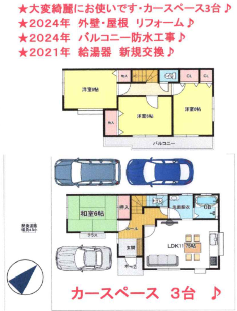 ☆鶴ヶ島市藤金 中古戸建て ☆2024年:外壁・屋根・バルコニー・防水工事リフォーム! ☆2021年:給湯器交換 ☆南西道路 ☆日当り良好! ☆駐車場3台 ☆合併浄化槽、プロパンガス、公営水道 |