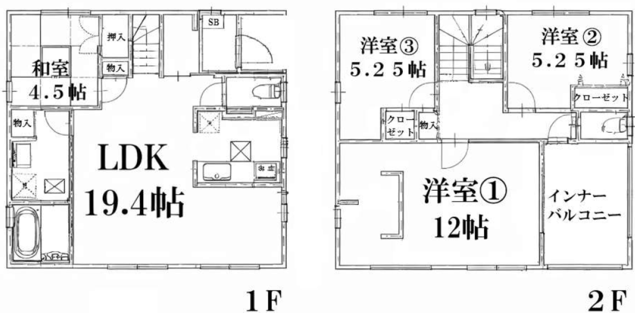 (1F)LDK19.4、(1F)和4.5、(2F)洋5.25、(2F)洋5.25、(2F)洋12 |