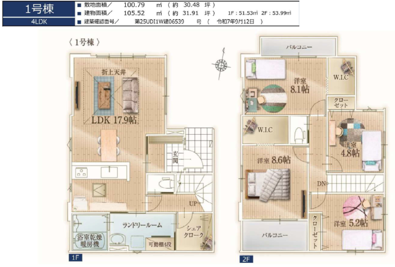 (1F)LDK17.9、(2F)洋8.1、(2F)洋8.6、(2F)洋4.8、(2F)洋5.2 |