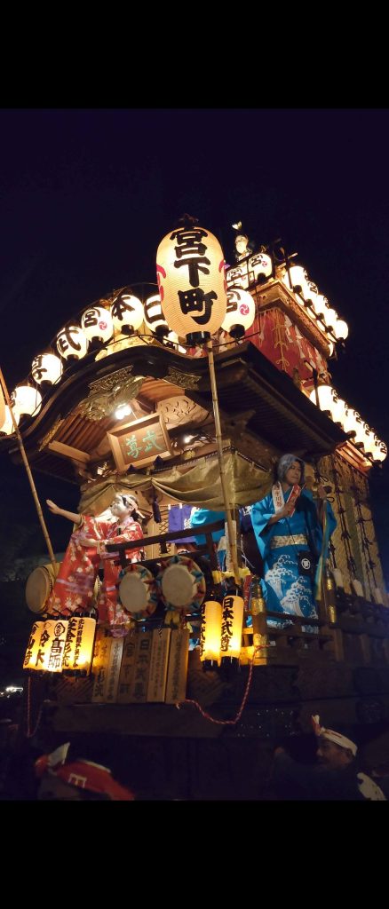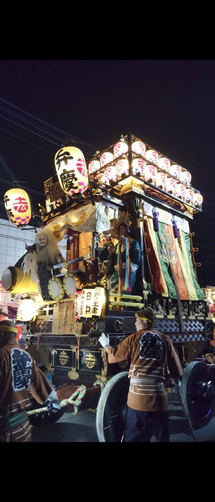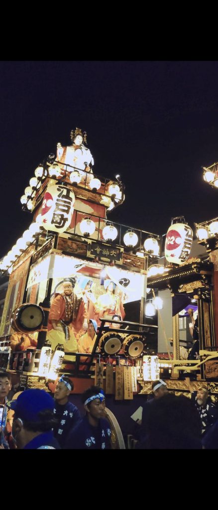そして、夜になるといよいよお待ちかねの山車(だし)が登場!